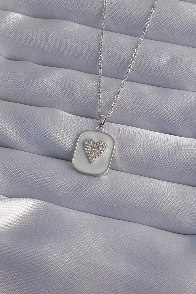 316L Çelik Zincir Mermer Desenli Gümüş Renk Zirkon Taşlı Kalp Model Kolye - TJ-BKO9014