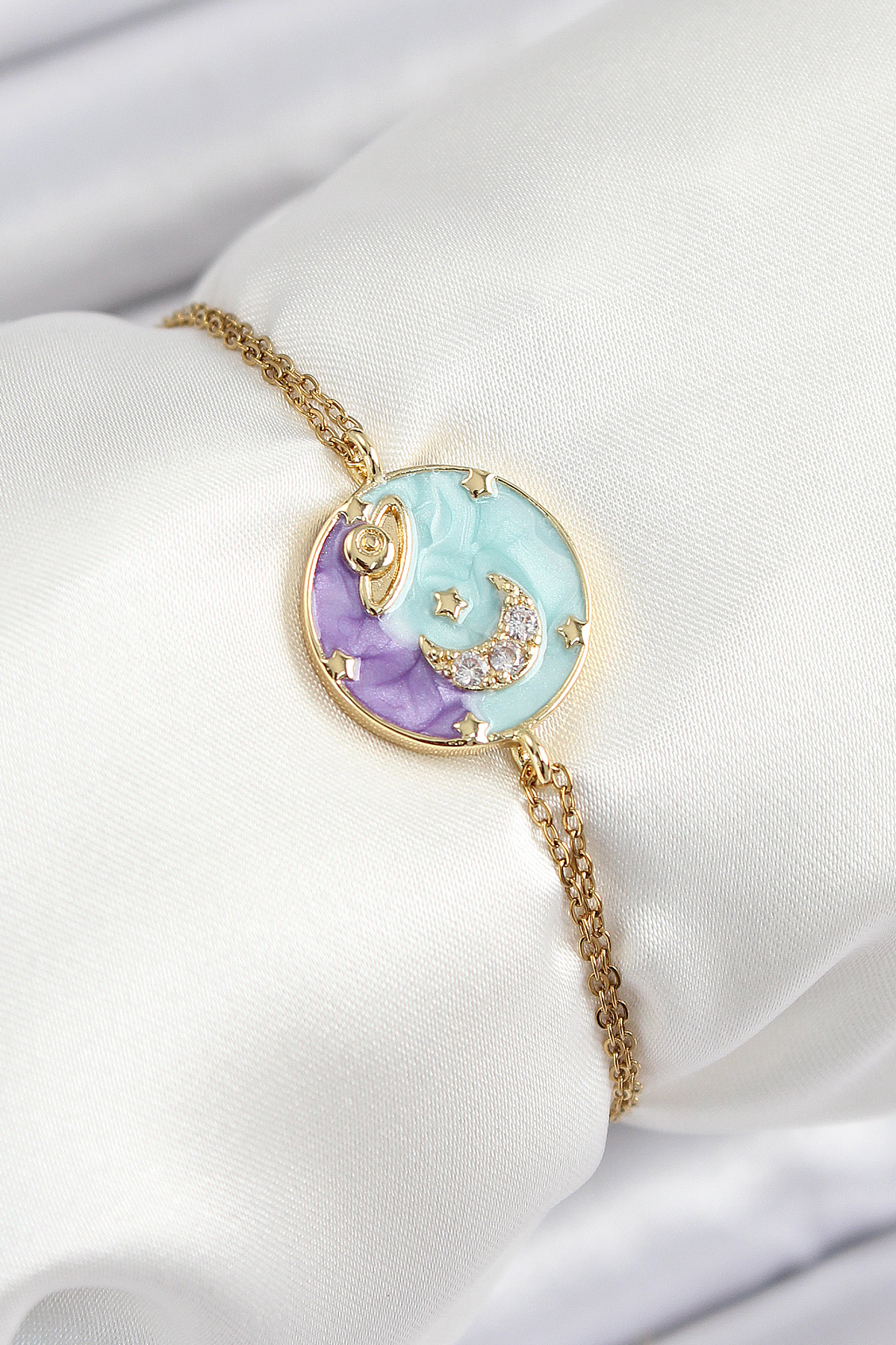 316L Çelik Zincir Mineli Sanatsal Portre Zirkon Taşlı Gezegen Model Gold Renk Kadın Bileklik - TJ-BB7233