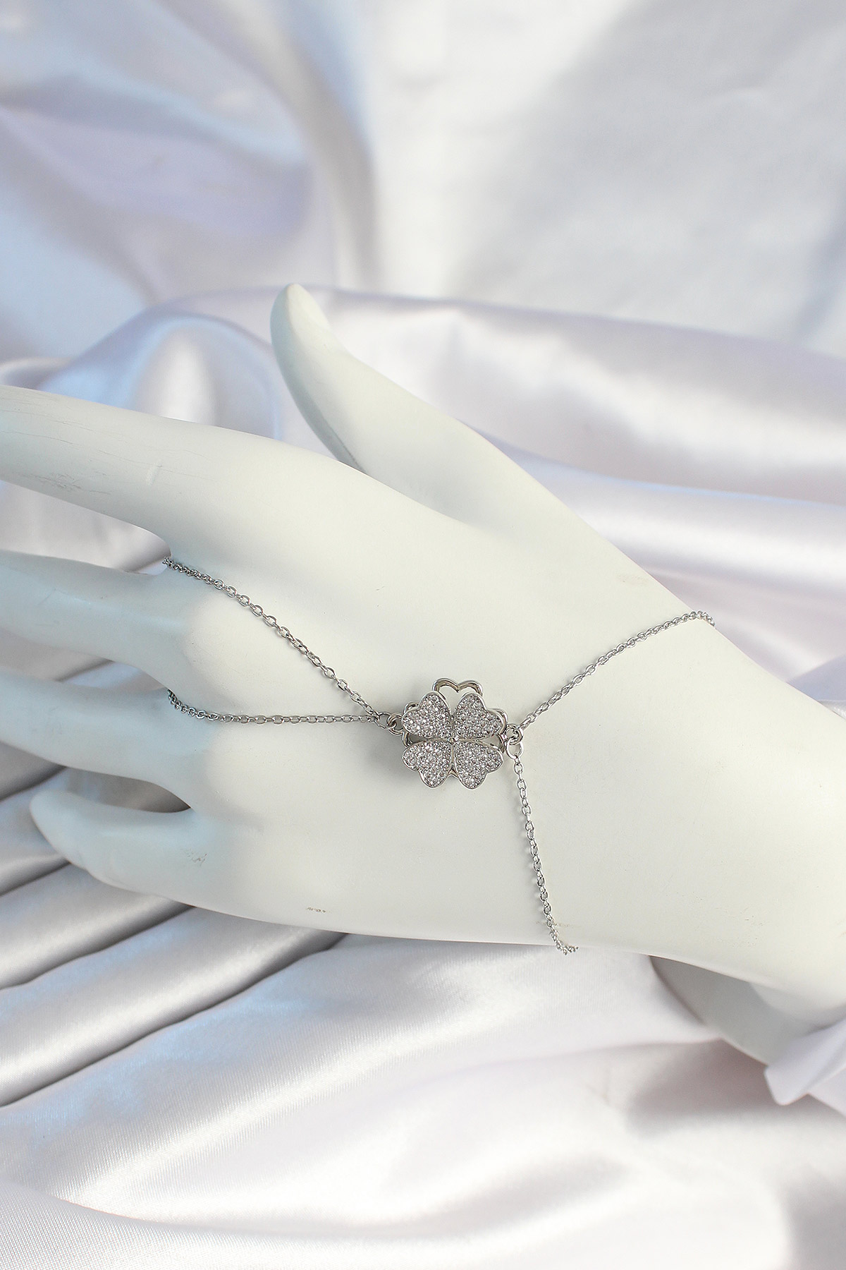 316L Çelik Zincirli Gümüş Renk Dönen Yonca Şahmeran - TJ-SN673