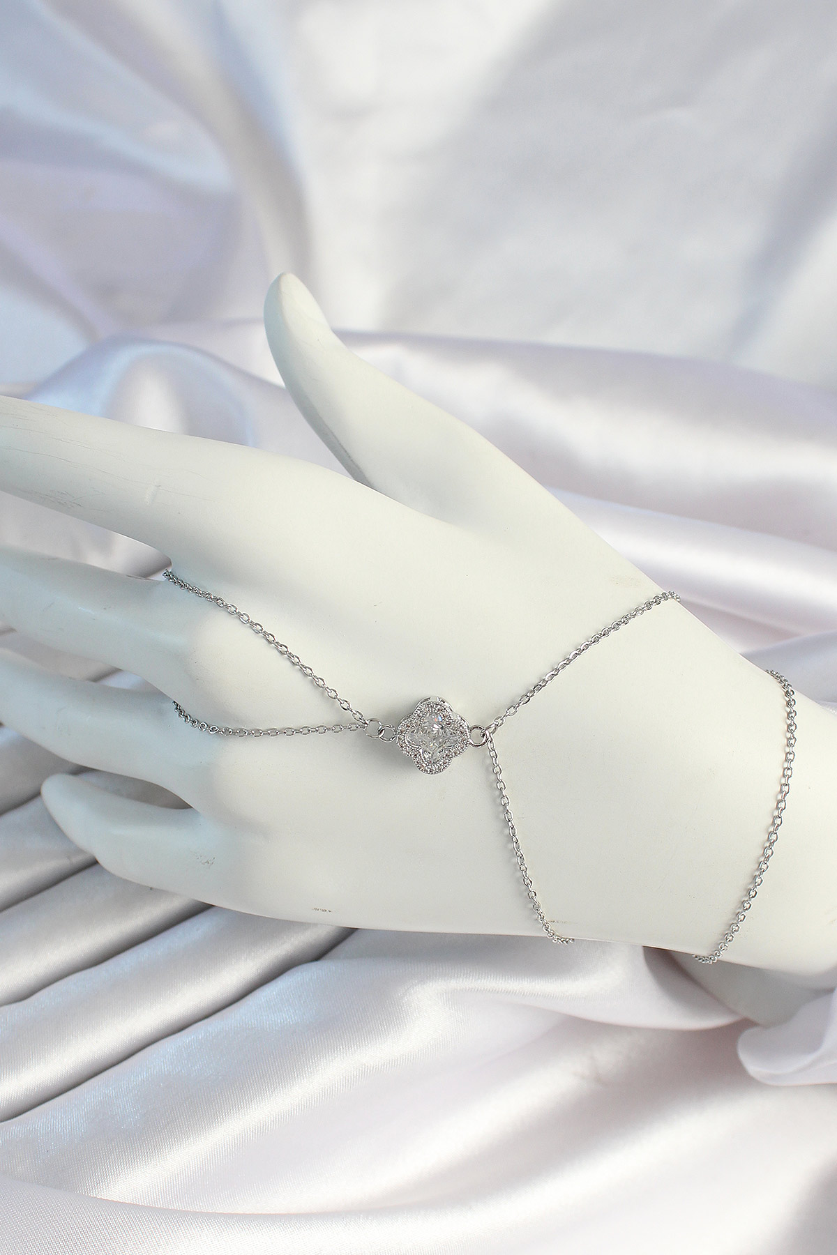 316L Çelik Zincirli Gümüş Renk Zirkon Taşlı Yonca Şahmeran - TJ-SN669