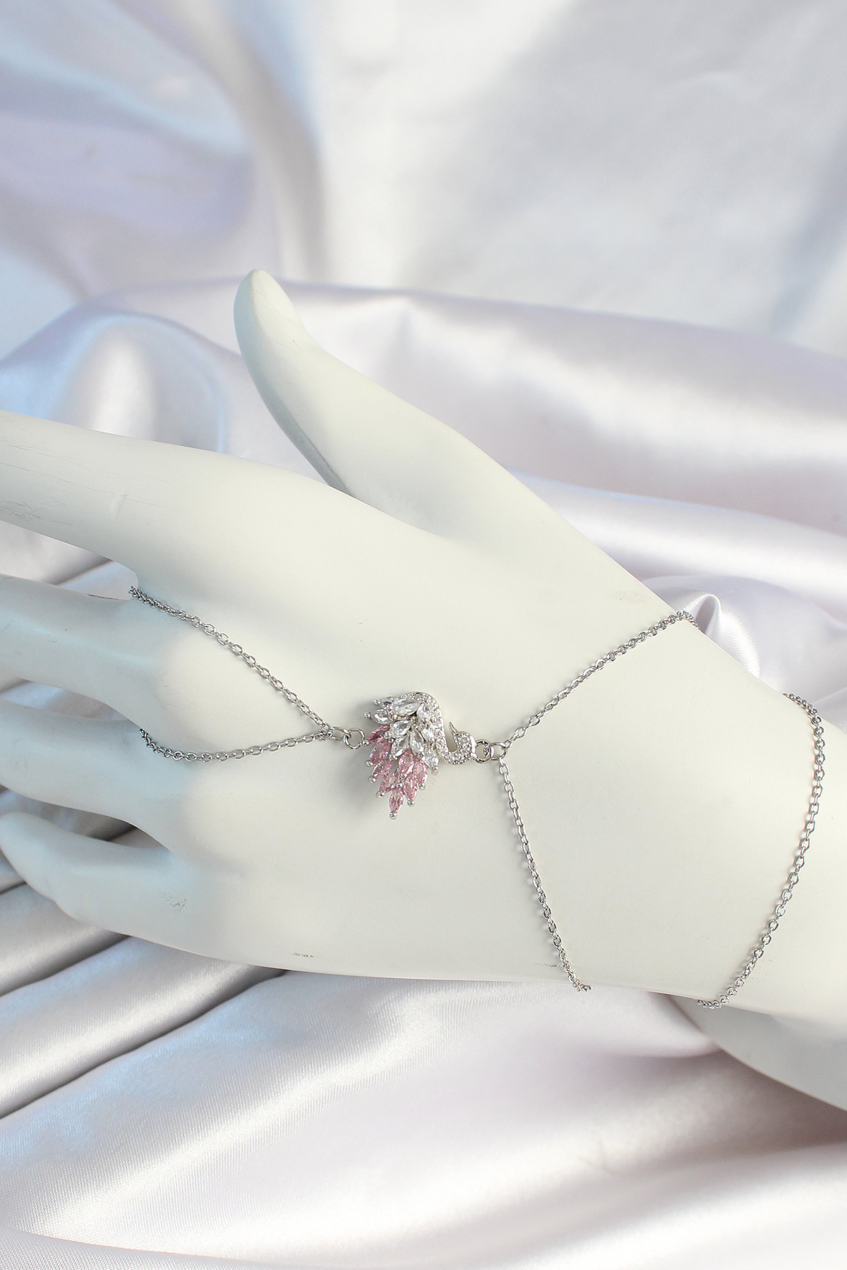 316L Çelik Zincirli Gümüş Zirkon Taşlı Kuğu Şahmeran - TJ-SN676