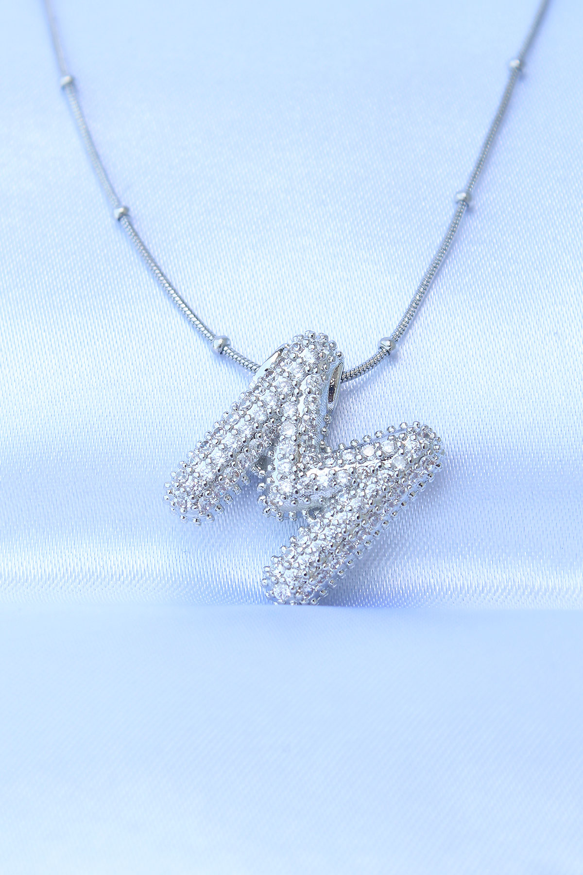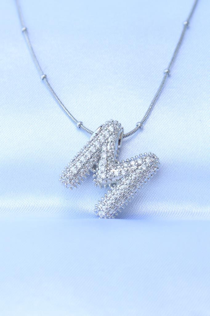 316L Çelik Zincirli Zirkon Taşlı M Harfli Gümüş Renk Bubble Kolye - TJ-BKO8727