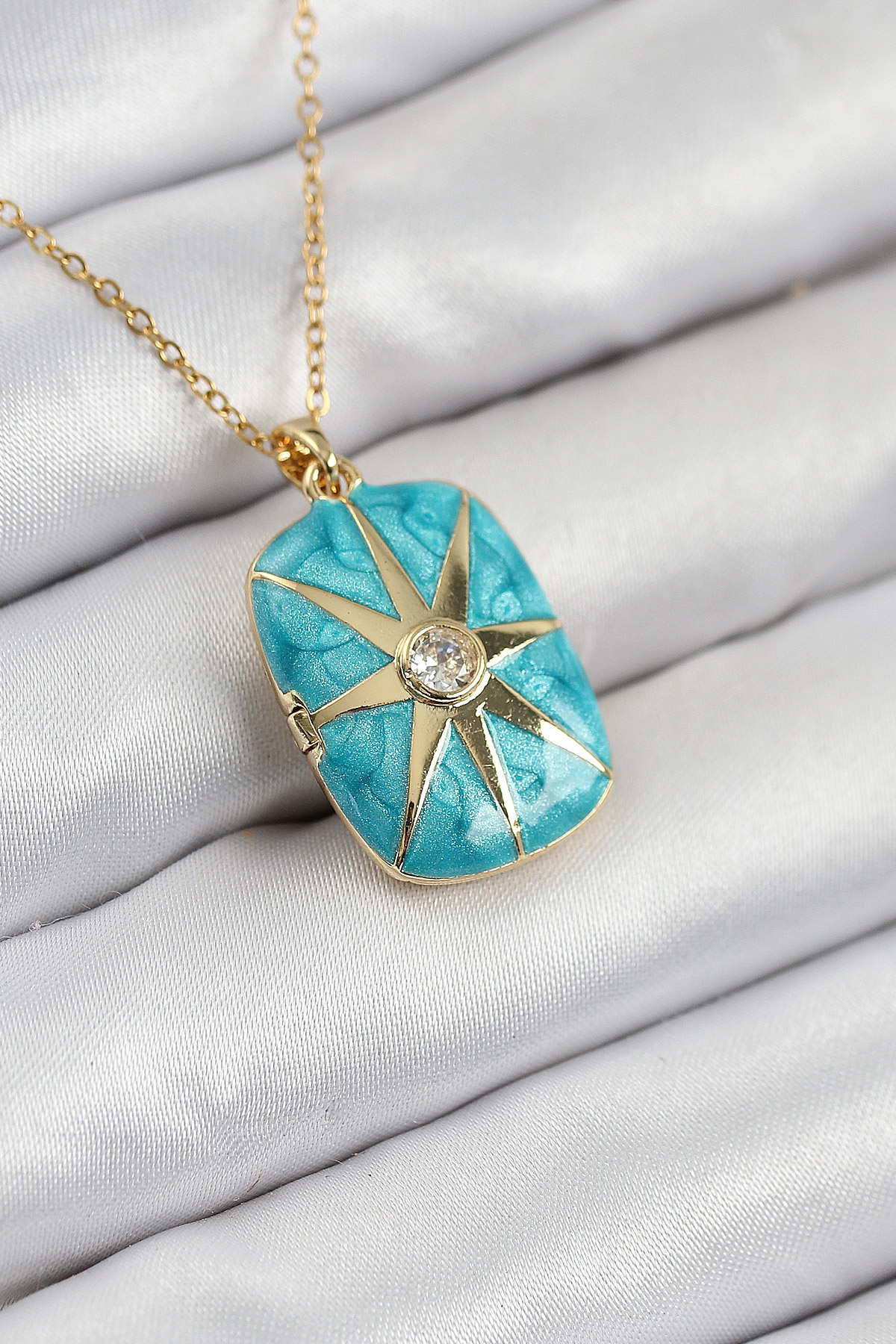 316L Çelik Zirkon Taşlı Açılabilr Kapaklı Kutup Yıldzı Model Gold Renk Kadın Kolye - TJ-BKO10517
