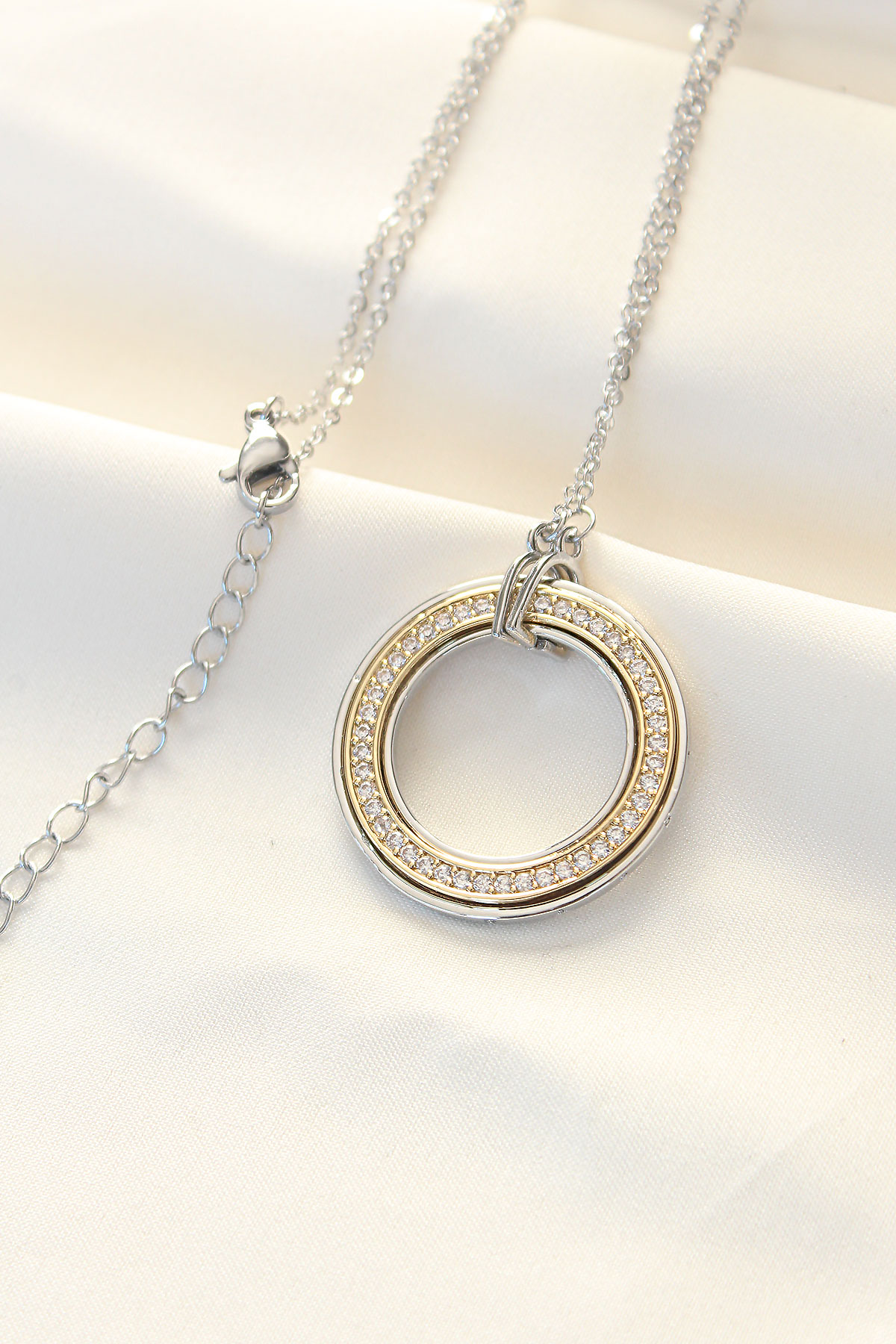 316L Çelik Zirkon Taşlı Çift Renkli Tifany Kolye - TJ-BKO8503