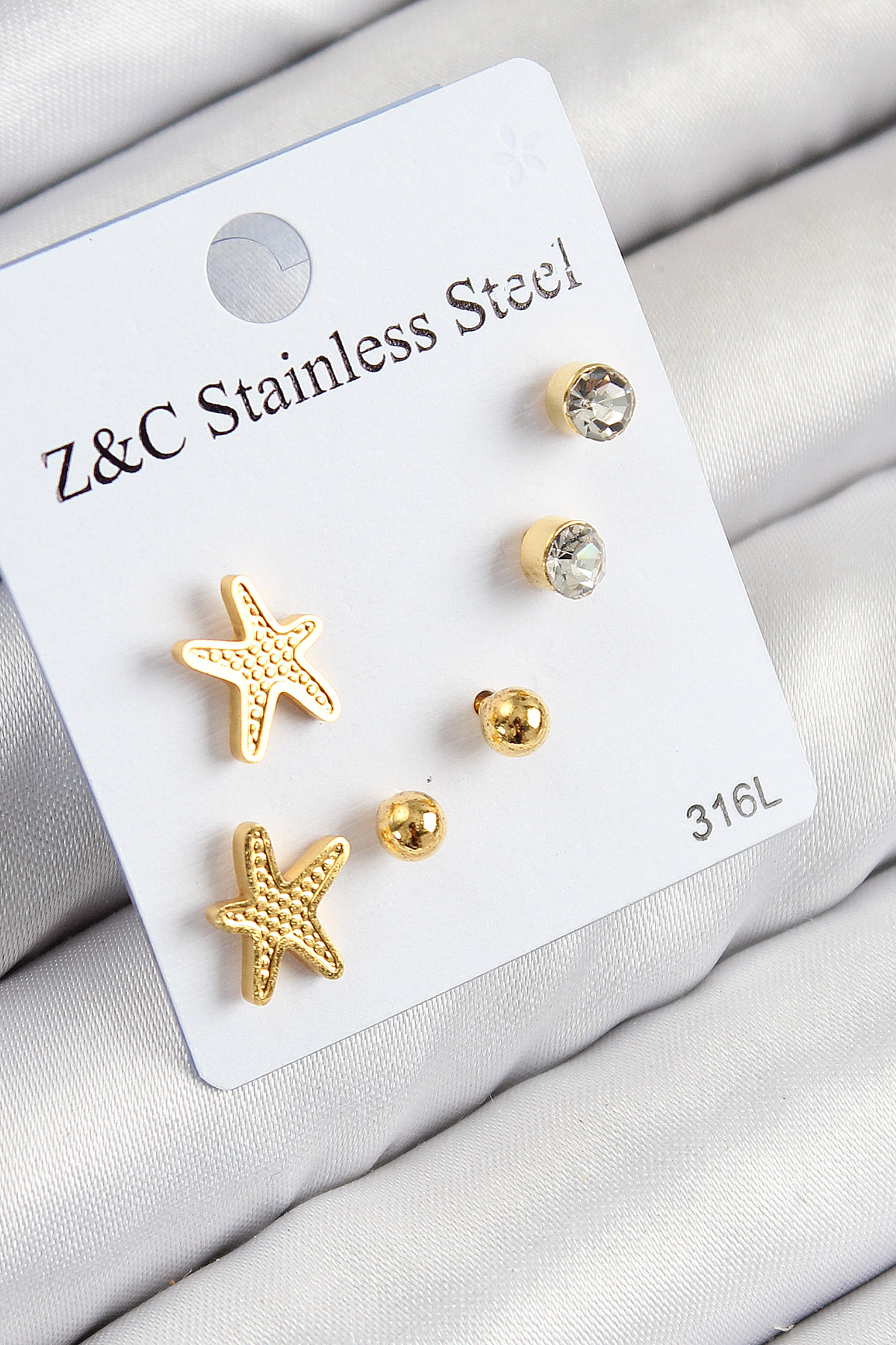 316L Çelik Zirkon Taşlı Deniz Yıldızı Model Gümüş Renk Kadın Set Küpe - TJ-BKP11120