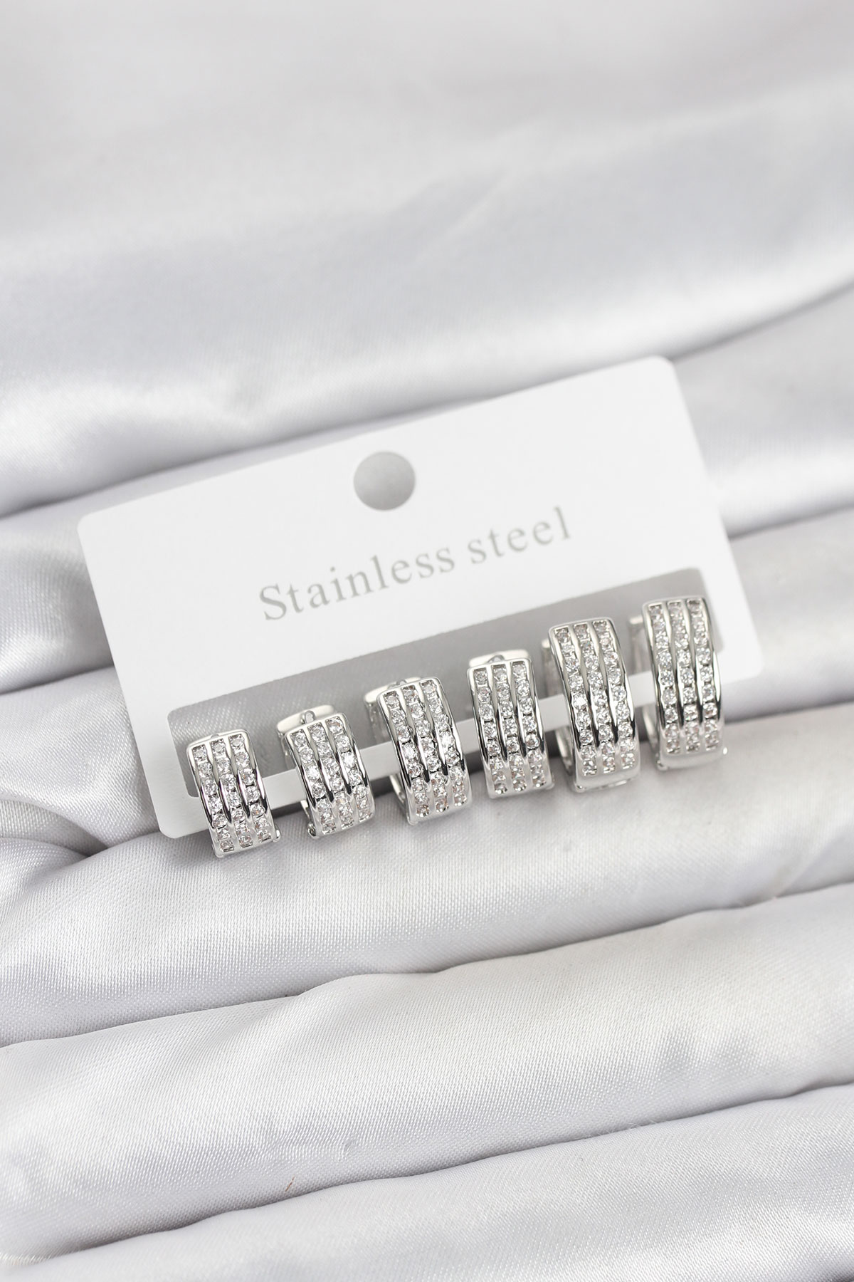 316L Çelik Zirkon Taşlı Gümüş Renk Halka Küpe Seti - TJ-BKP11519