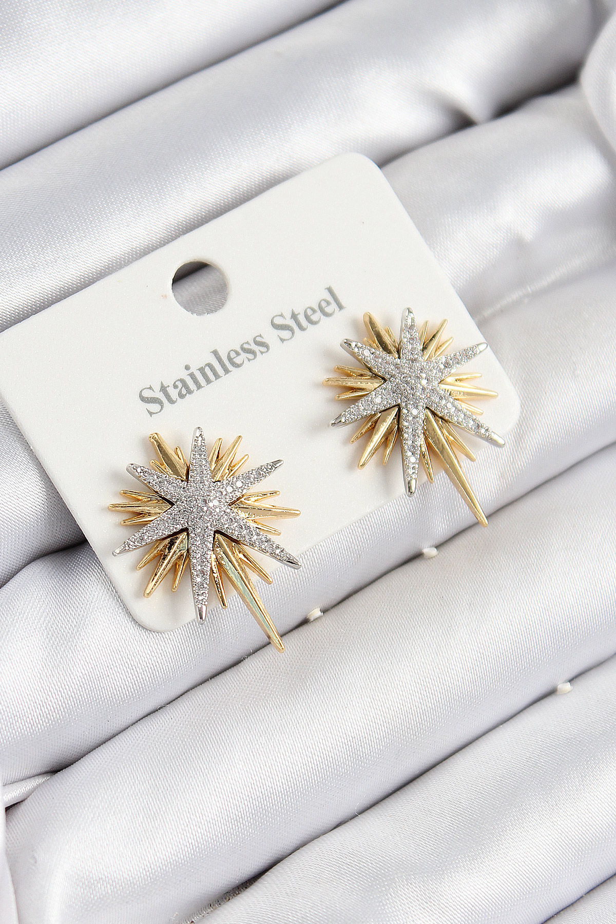 316L Çelik Zirkon Taşlı Kutup Yıldızı Model Gold Ve Gümüş Renk Kadın Küpe - TJ-BKP10928
