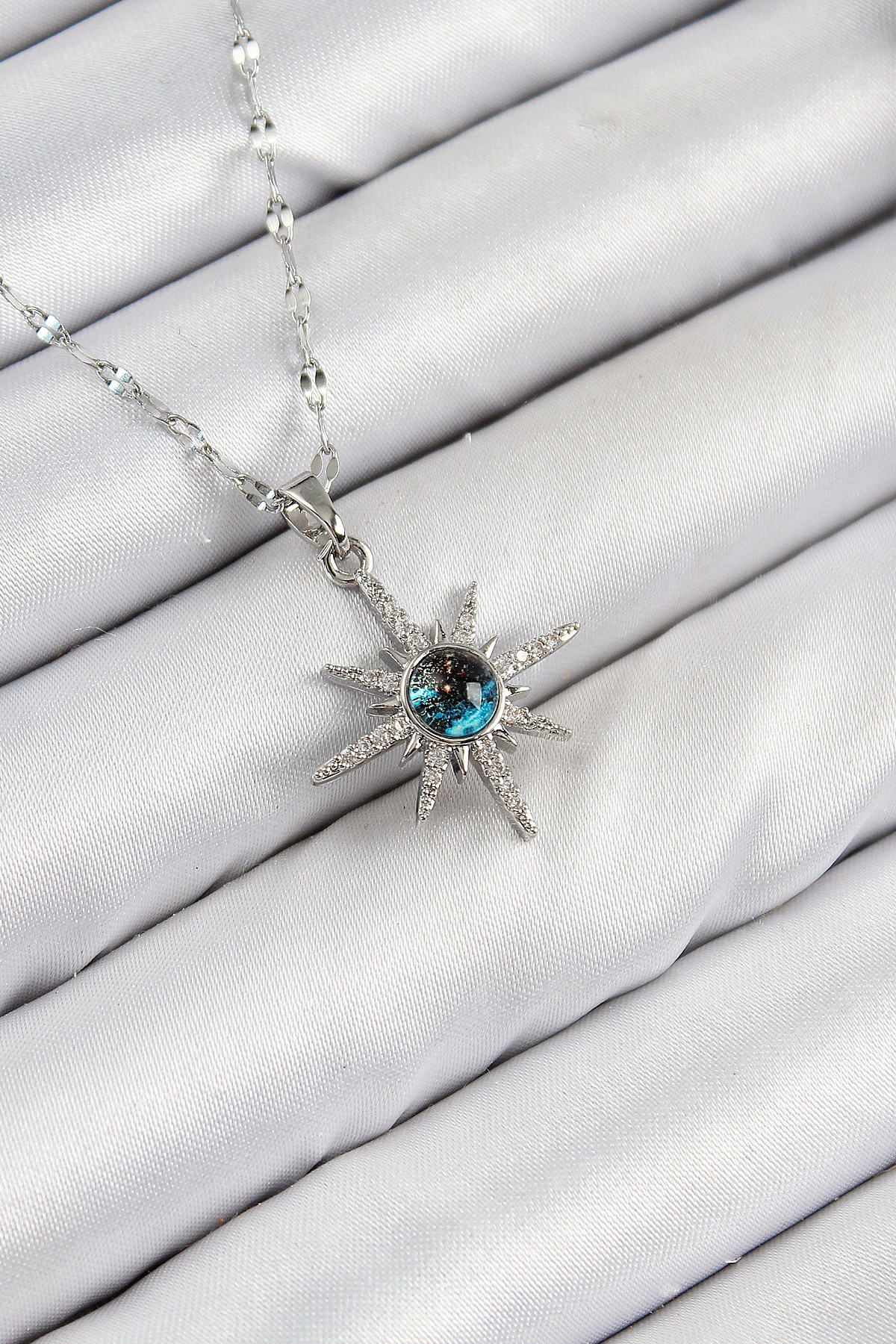 316L Çelik Zirkon Taşlı Kutup Yıldızı Model Gümüş Renk Kadın Kolye - TJ-BKO10443