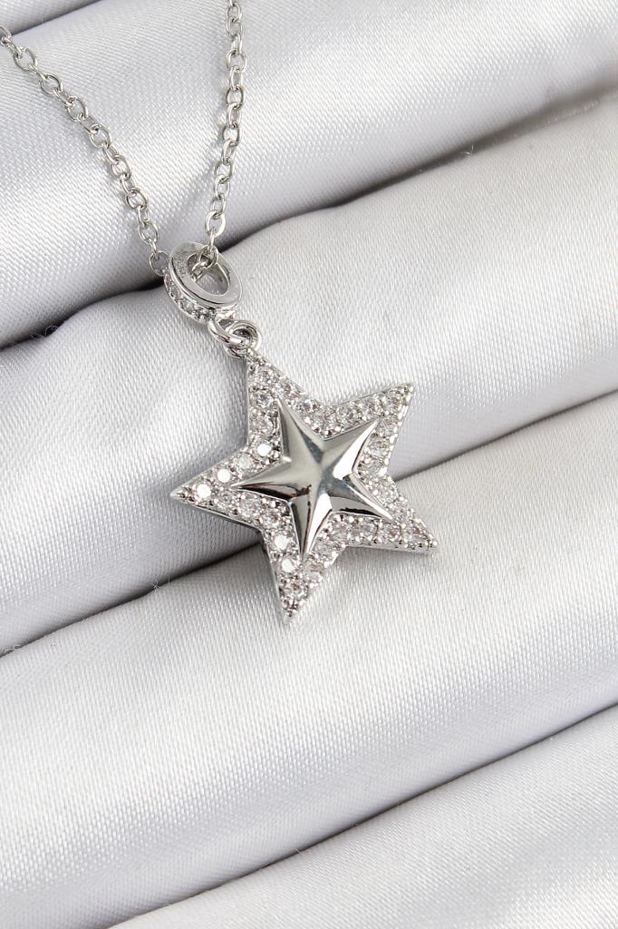 316L Çelik Zirkon Taşlı Yıldız Model Gümüş Renk Kadın Kolye - BKO10358