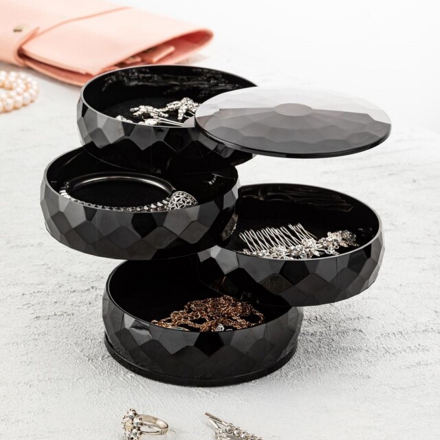 360 Derece Dönebilen 4 Katlı Takı - Toka - Küpe - Bileklik Organizer - Siyah
