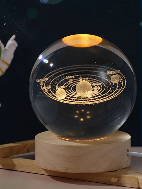 Evinize veya çalışma alanınıza evrenin büyüleyici güzelliğini taşıyın! ???? Bu özel tasarım 3D Kristal Güneş Sistemi Küresi, içerisinde lazerle işlenmiş gezegen detaylarıyla güneş sistemini şık bir şekilde sergiler. Alt kısmındaki LED ışık sayesinde gezegenler canlı bir şekilde parıldar ve ortama mistik bir hava katar.