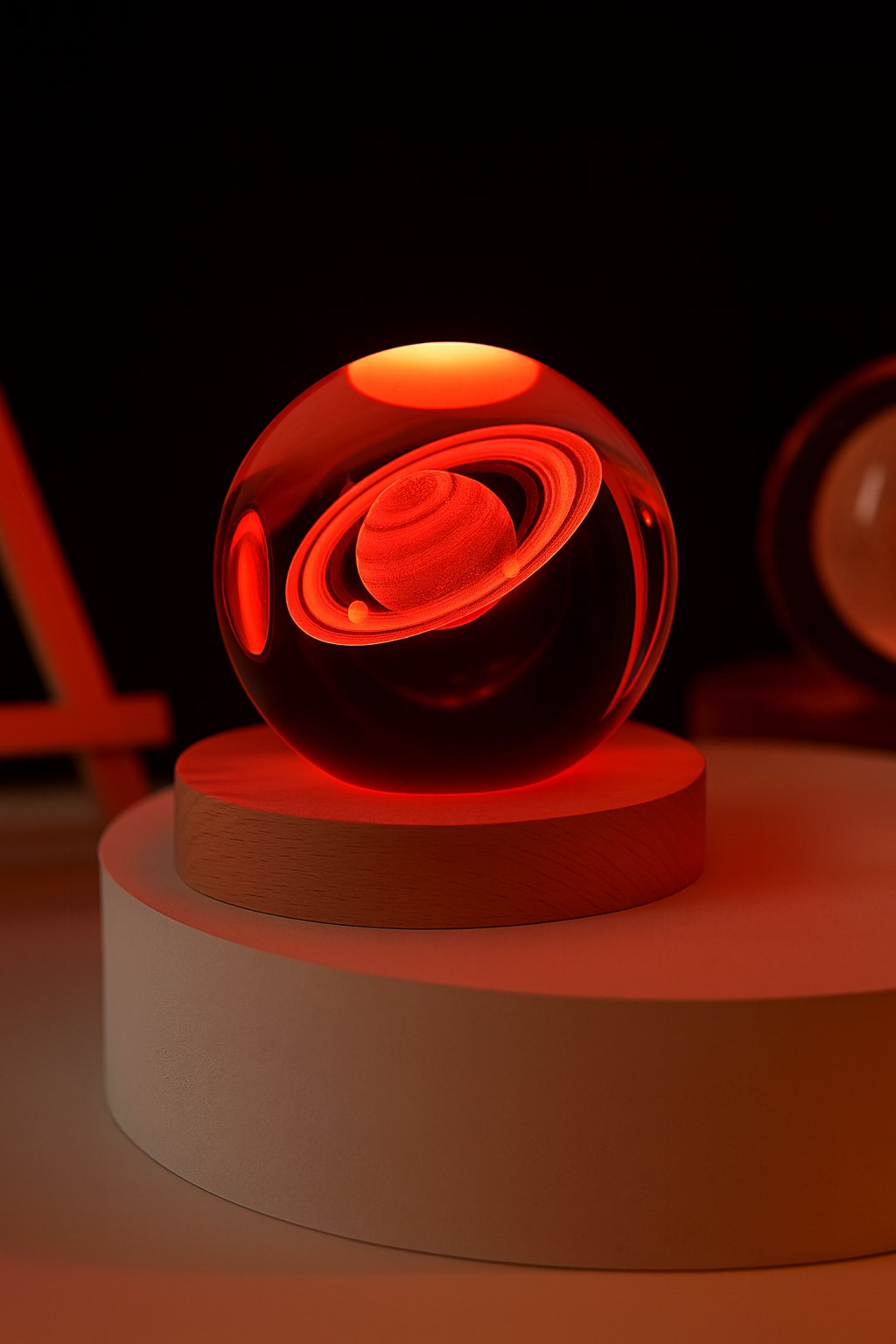 6 cm çapında kristal küre: İç kısmında 3D lazer teknolojisiyle işlenmiş Satürn gezegeni ve halkaları bulunur.