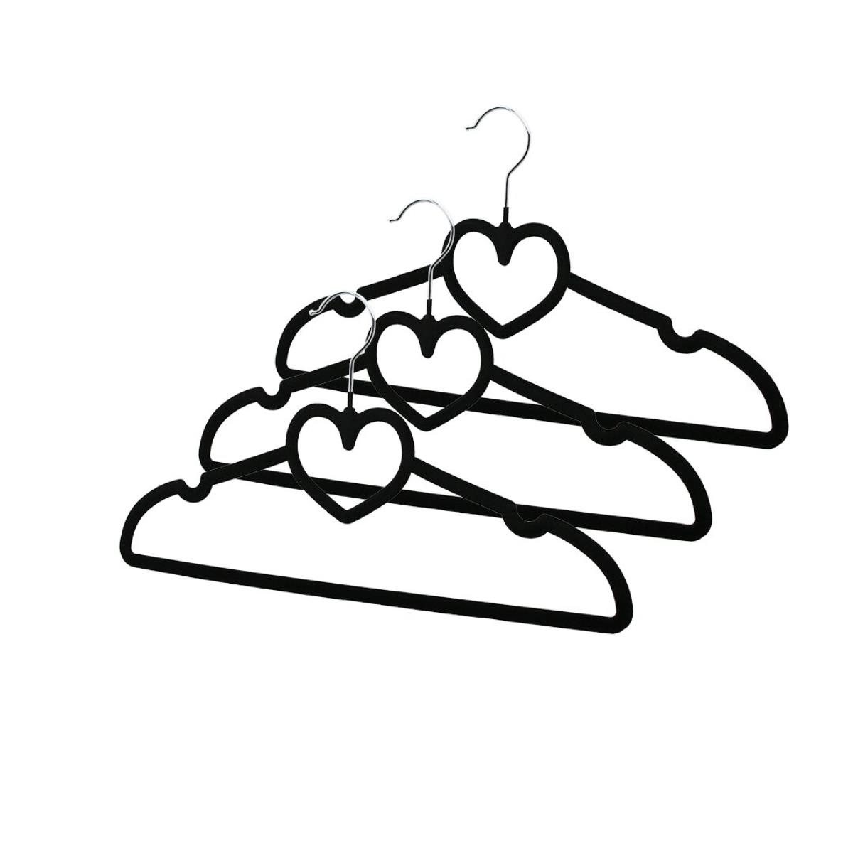 3Pcs Siyah Kadife Kaplı - Kalpli Plastik Askı Metal Uçlu