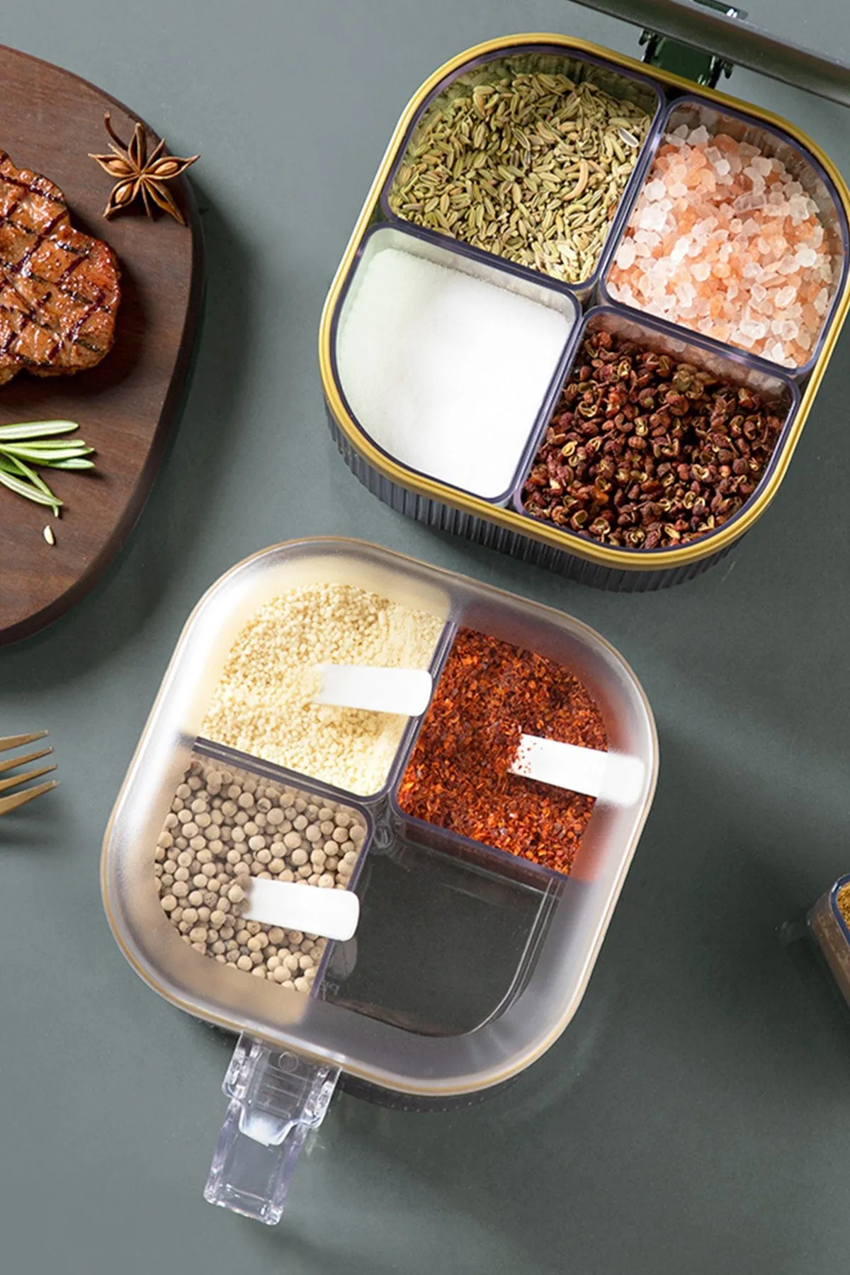 4 Bölmeli Gold Detaylı Açılır Kapanır Kapaklı Kaşıklı Baharatlık Saklama Kabı Düzenleyici -LV-295 8682397002953