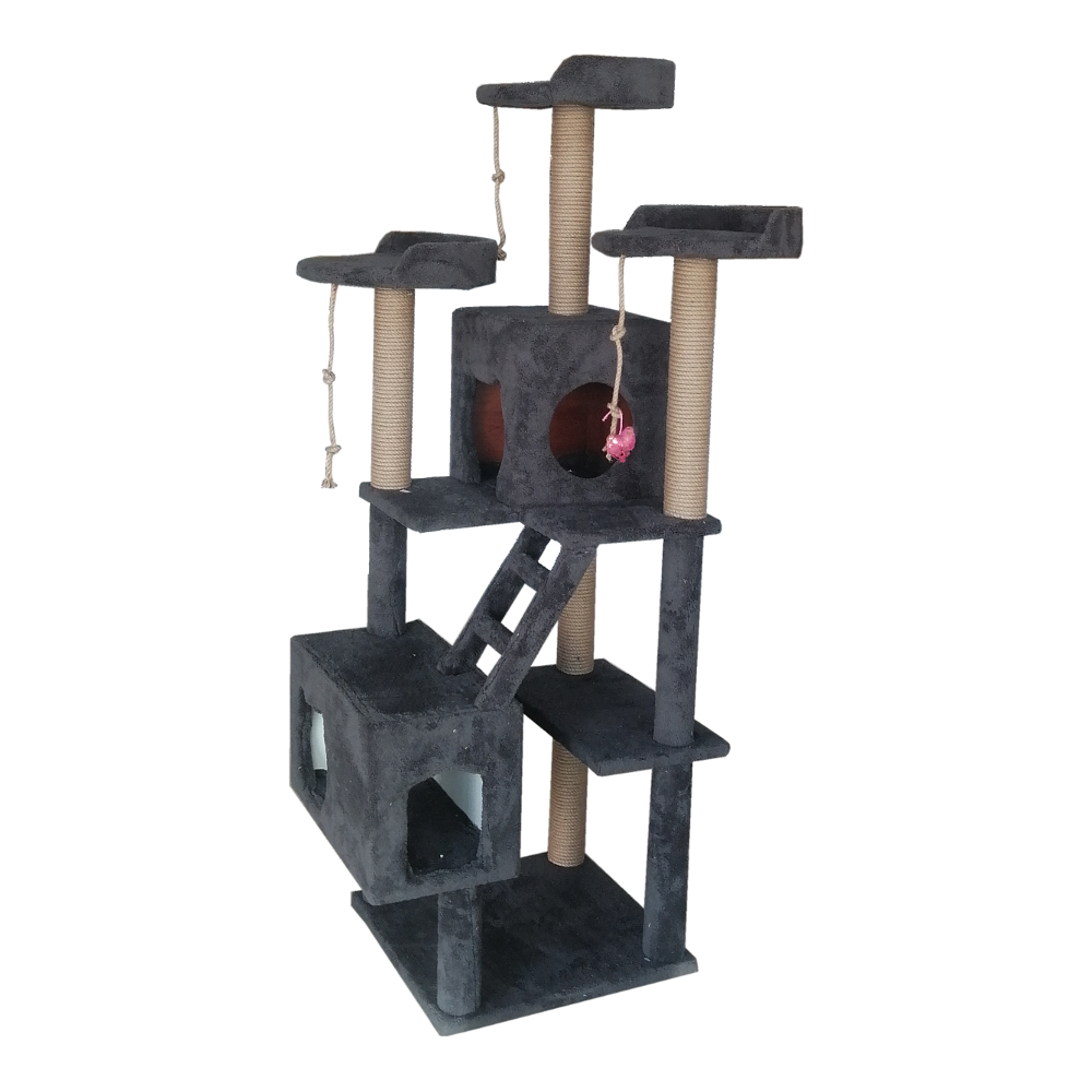 4 Katlı Merdivenli Yuvalı Kedi Tırmalama Oyun Alanı 170 cm Koyu Gri