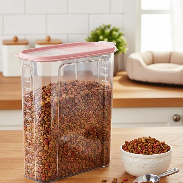 4 Lt Mama Saklama Kutusu, evcil dostlarınızın kuru mamalarını düzenli ve hijyenik şekilde muhafaza etmek için tasarlanmış pratik bir depolama çözümüdür. Geniş 4 litre hacim kapasitesi sayesinde günlük kullanım için ideal miktarda mamayı tek bir kapta saklamanıza yardımcı olur. Dayanıklı ve şeffaf gövde yapısına sahip mama saklama kutusu, içindeki mamanın miktarını kolayca görmenizi sağlar ve ölçü çizgileri sayesinde doluluk seviyesini rahatça takip etmenize imkân tanır. Özel tasarlanmış kapaklı tasarım yapısı, mamanın dış etkenlerle temasını azaltarak daha düzenli bir saklama alanı sunar. Modern ve sade görünümü ile hem mutfakta hem de evcil hayvan besleme alanlarında estetik bir kuru mama saklama kabı olarak kullanılabilir. Kompakt formu sayesinde dolap içinde ya da tezgâh üzerinde yer kaplamadan düzen sağlar.