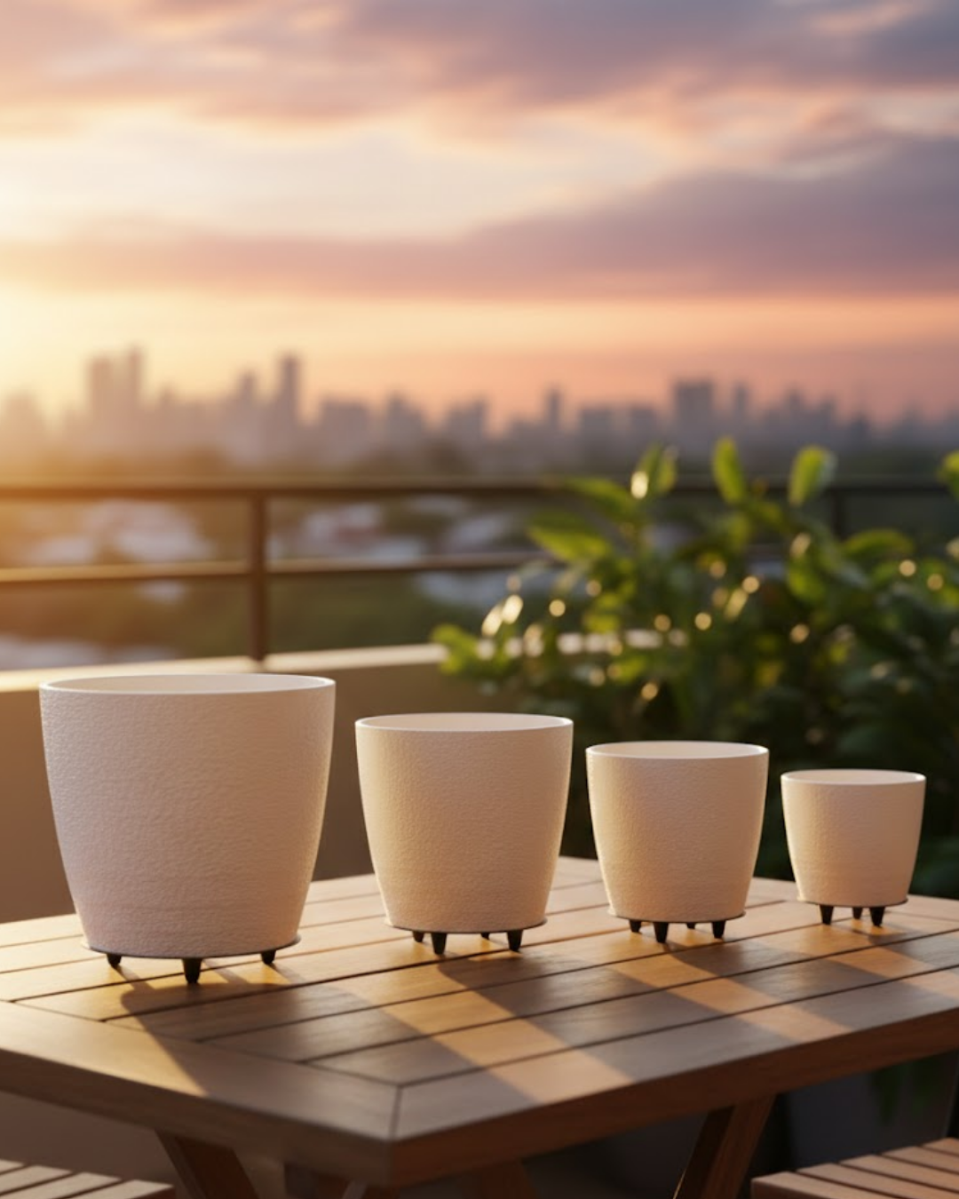 4’lü 3D Modern Beyaz Vazo Takımı Ayaklı Dekoratif Saksı Seti