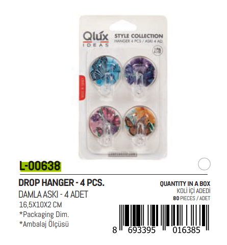 4 Parça Damla Küçük Yapışkan Askı
