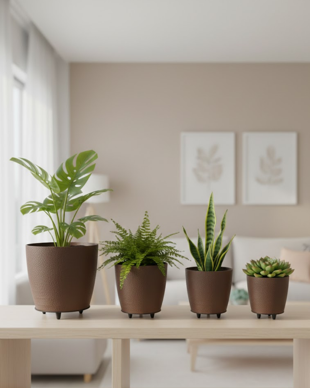 4’lü 3D Kahverengi Dekoratif Saksı Seti, doğal tonları ve modern formu ile dekorasyonunuzu tamamlayan özel bir tasarımdır. Hem iç hem dış mekânda kullanılabilir. Zamansız görünümü sayesinde uzun yıllar stilinizi yansıtır.