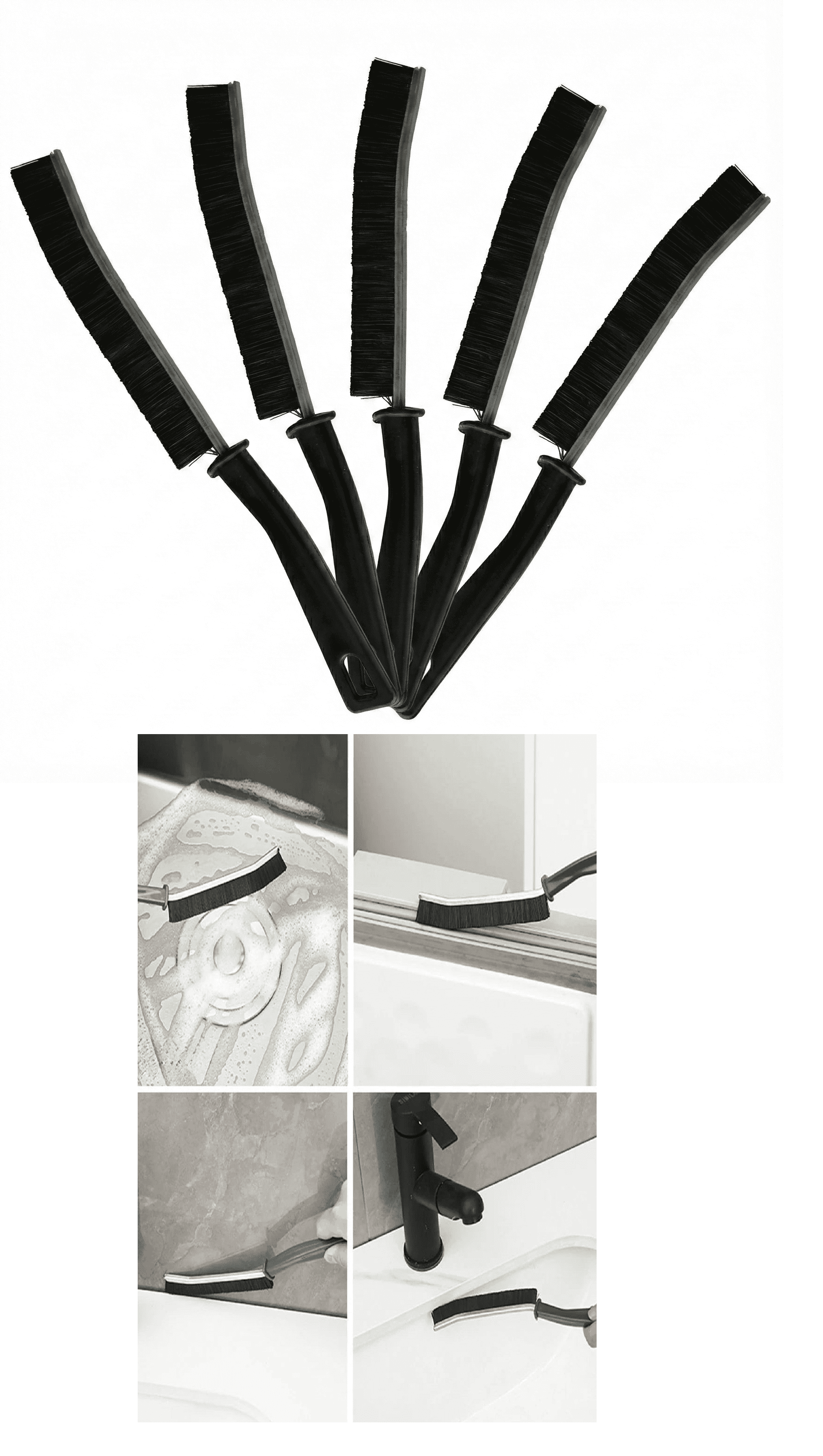 5 Adet İnce Kıl Fırça Banyo Mutfak Pencere Oluk Klozet Kenarı Kavisli Detay Temizleme Fırçası , fırçaların giremediği girilmesi zor yerlere girerek detaylı temizlik yapmanızı sağlar.