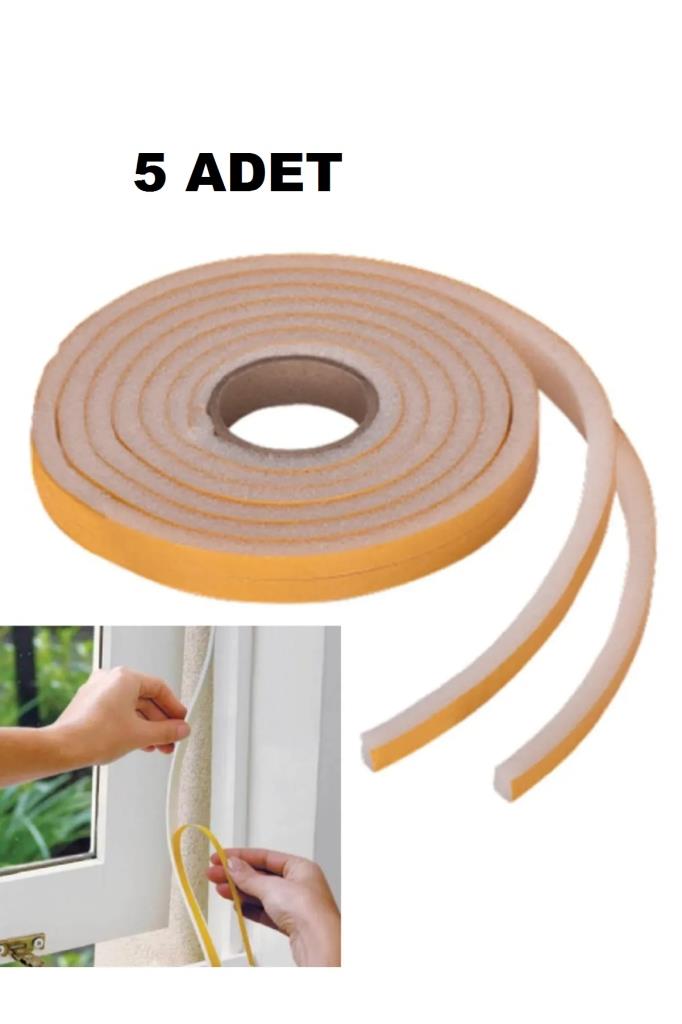 5 Adet Pencere Isı Yalıtım Süngeri Yapışkanlı Pencere Rüzgar Bandı (5 Adet x 5Metre)