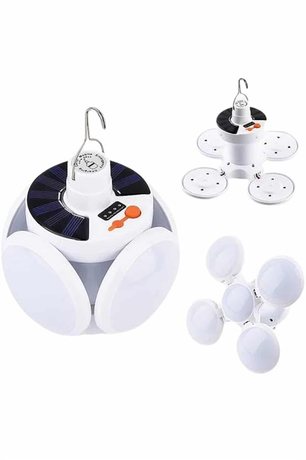 Solar Güneş Enerjisi ve USB Şarjlı 5 Kanatlı Taşınabilir Lamba – Çok Fonksiyonlu, Su Geçirmez ve Enerji Verimli AydınlatmaAçık hava etkinliklerinde, kamp gezilerinde veya acil durumlarda kullanabileceğiniz mükemmel bir taşınabilir aydınlatma çözümü arıyorsanız, Solar Güneş Enerjisi ve USB Şarjlı 5 Kanatlı Lamba tam size göre! Bu pratik lamba, güneş enerjisi ile şarj olabileceği gibi, USB ile de kolayca şarj edilebilir ve her koşulda güvenilir bir ışık kaynağı sunar.5 kanatlı tasarımı, ışığın yayılmasını etkili bir şekilde sağlayarak geniş alanları aydınlatmanızı mümkün kılar. Katlanabilir yapısı sayesinde ışık açısını ihtiyacınıza göre ayarlayabilirsiniz. Böylece karanlık alanlarda daha geniş bir alanı rahatlıkla aydınlatabilirsiniz.Güneş paneli ile doğa dostu bir enerji kaynağı kullanabileceğiniz gibi, USB ile şarj etme seçeneği de sunan bu lamba, her ortamda pratik kullanım imkânı sağlar. Solar şarj ile çevreye duyarlı bir şekilde enerji elde ederken, USB şarj özelliği sayesinde hızlı ve pratik bir şekilde enerji depolayabilirsiniz.Su geçirmez IP65 özelliği, dış mekanlarda kullanım için ekstra dayanıklılık sunar. Yağmurda veya nemli koşullarda bile güvenle kullanılabilir. Ürün, 45 LED ışık kaynağı ile karanlık ortamlarda yüksek kaliteli ışık sağlar ve 6500K renk sıcaklığı ile net ve parlak bir aydınlatma sunar.Teknik Özellikler:Güneş Paneli: 5.5V polikristal silikon güneş paneliPil: 18650 lityum pil, 2400mAhIşık Kaynağı: 45 LEDÇalışma Süresi: 6-8 saatŞarj Süresi: Solar şarj için 8 saat / USB şarj ile 6 saatŞarj Yöntemi: Solar şarj (DC 3.5V) / USB şarj (voltaj 4.5V)Su Geçirmezlik: IP65Renk Sıcaklığı: 6500KÜrün Boyutu: 14 cm * 11.5 cmPaket İçeriği:1 Adet 5 Kanatlı Solar Pratik LambaAcil durumlarda, kamp gezilerinde veya açık hava etkinliklerinde güvenle kullanabileceğiniz bu solar lamba, size her zaman güvenli, verimli ve çevre dostu bir ışık kaynağı sunar. Hem güneş enerjisiyle hem de USB ile şarj edilebilen bu pratik aydınlatma aracı, her koşulda size yardımcı olur.