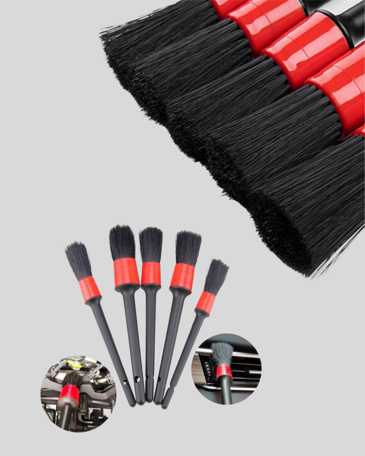 Aracınızın iç ve dış yüzeylerinde kullanıma uygun olan bu temizlik fırçası seti, dar alanlara ulaşmak için özel olarak tasarlanmıştır. Set, 5 farklı boyda fırçadan oluşur. Yüzeye zarar vermeyen kılları sayesinde deri, plastik ve metal parçalar üzerinde güvenle kullanılabilir.