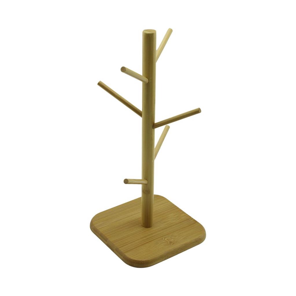 6 Kollu Ahşap Bambu Organizer Askılık Fincan - Kupa Bardak Kare Taban=16Cm Y=34.5Cm