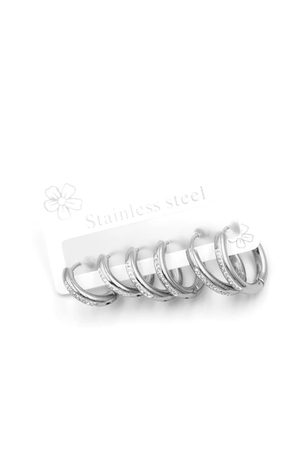 6'lı Çelik Halka Küpe - Gümüş