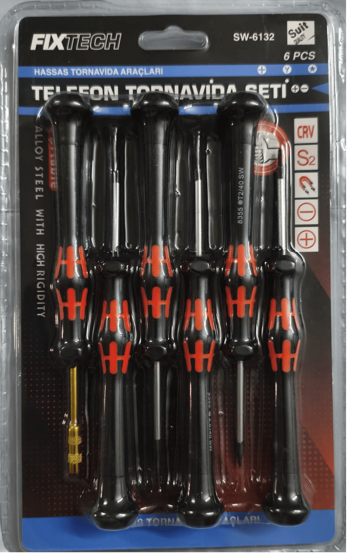 6 Parça Saatçi ve Telefoncu Onarım Tornavida Seti Hassas Tornavida Seti, tüm hassas tamir işleri için kullanacağınız yıldız ve düz tornavida takımından oluşur.