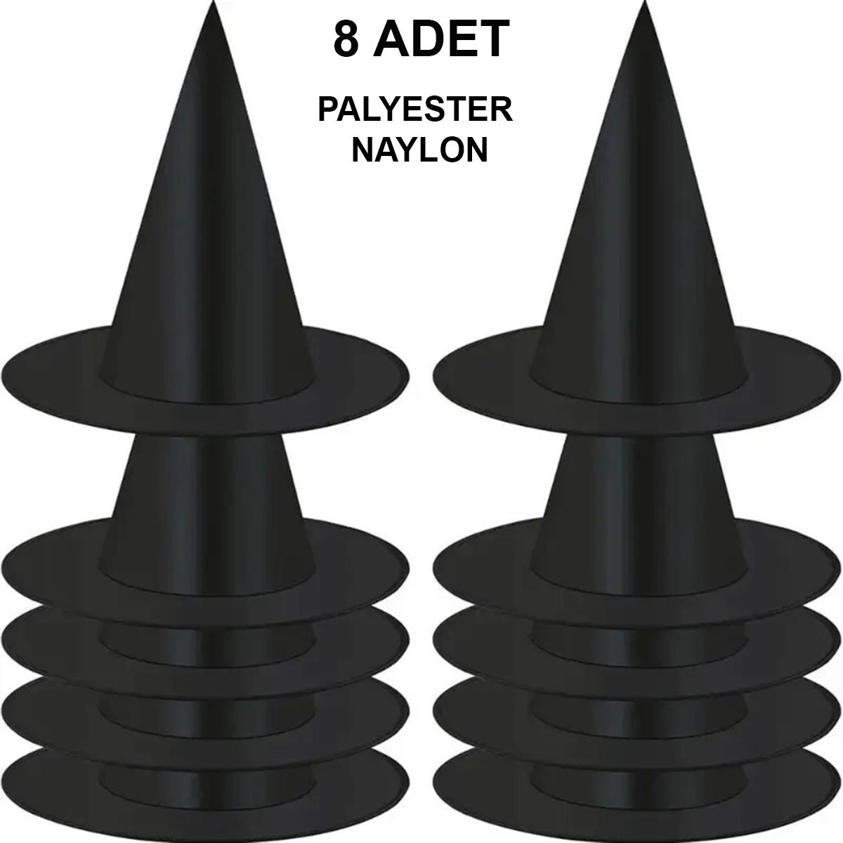 8 Adet Siyah Cadı Şapkası – Yetişkin &Amp;Amp;Amp; Çocuk Kostüm Aksesuarı