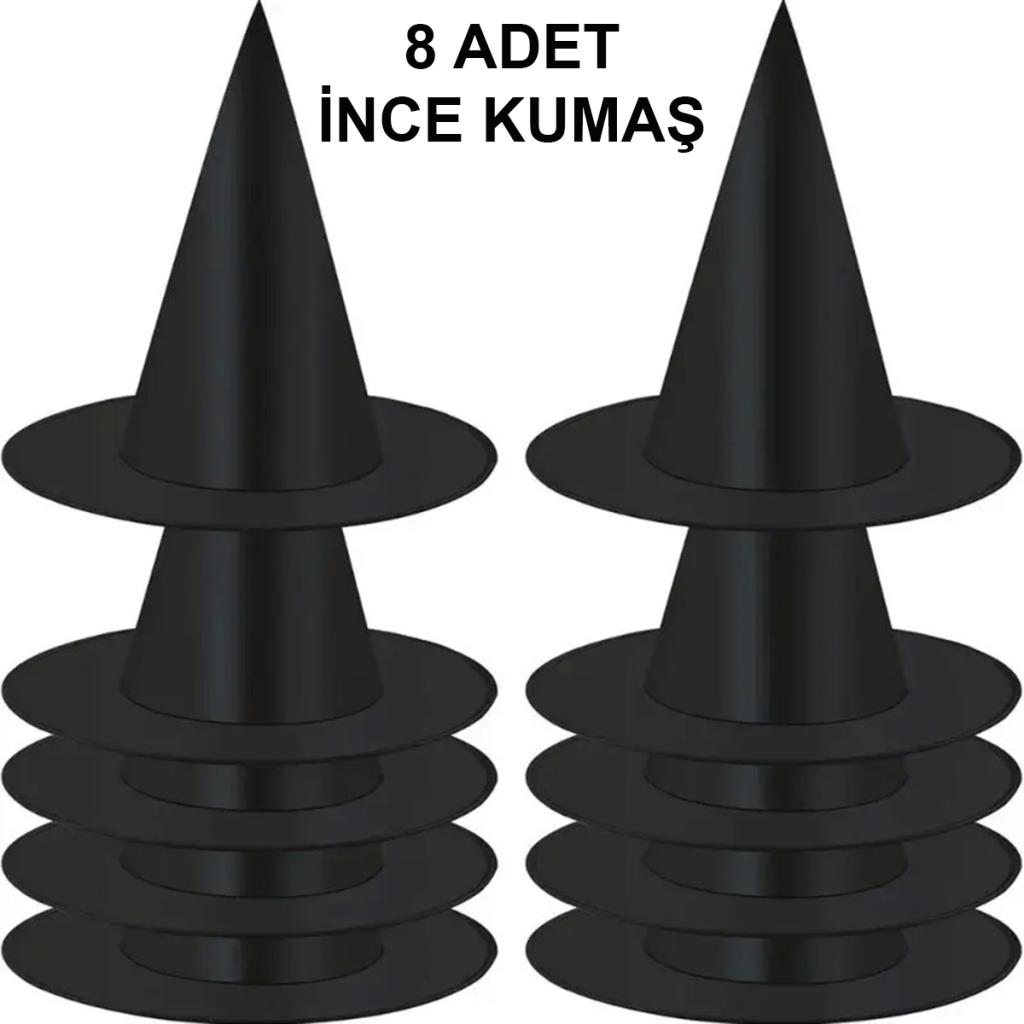 8 Adet Siyah Cadı Şapkası – Yetişkin & Çocuk Kostüm Aksesuarı
