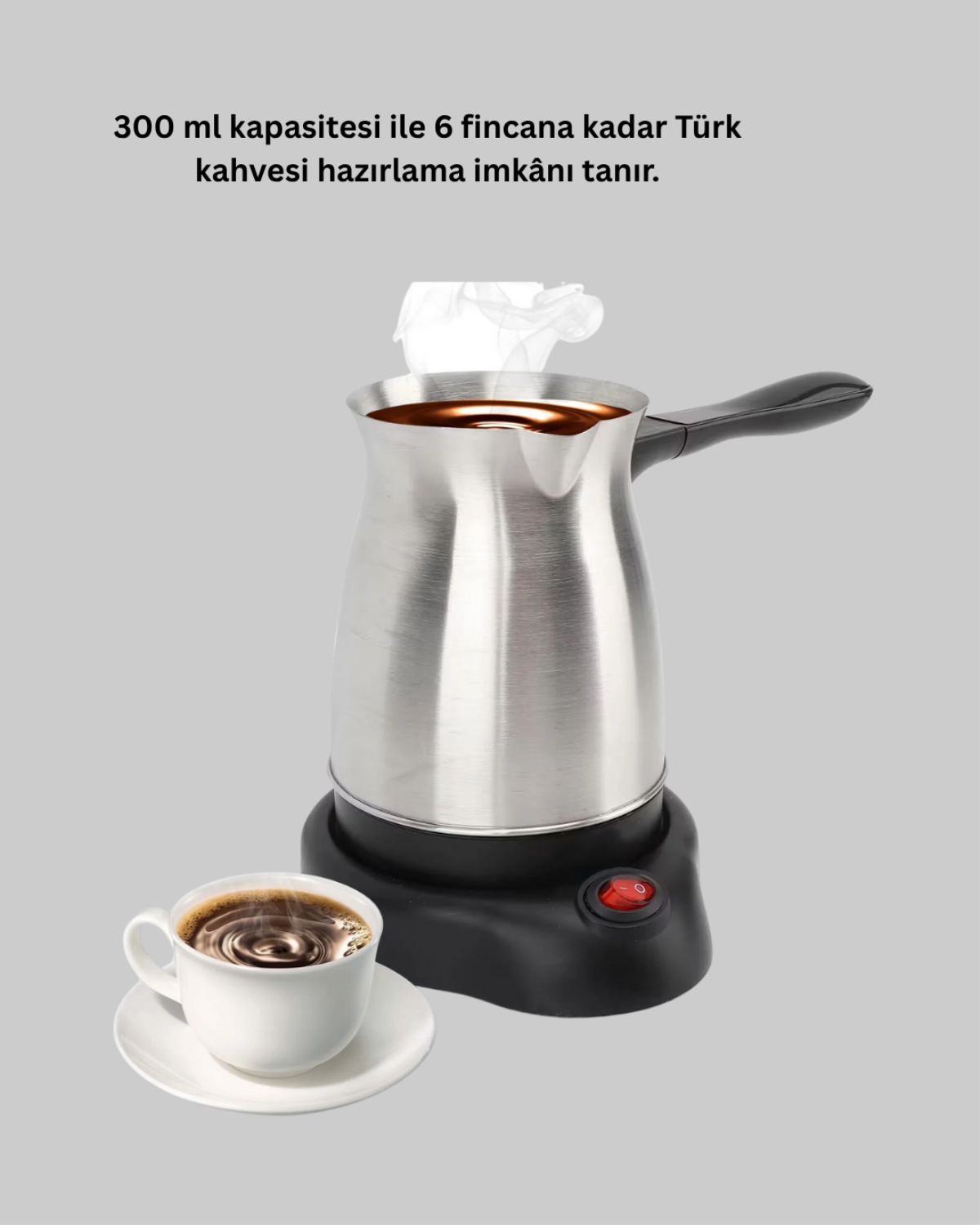 800W gücü ile hızlı kahve hazırlığı sağlar, 300 ml kapasitesi sayesinde 6 fincana kadar kahve pişirme imkanı tanır.