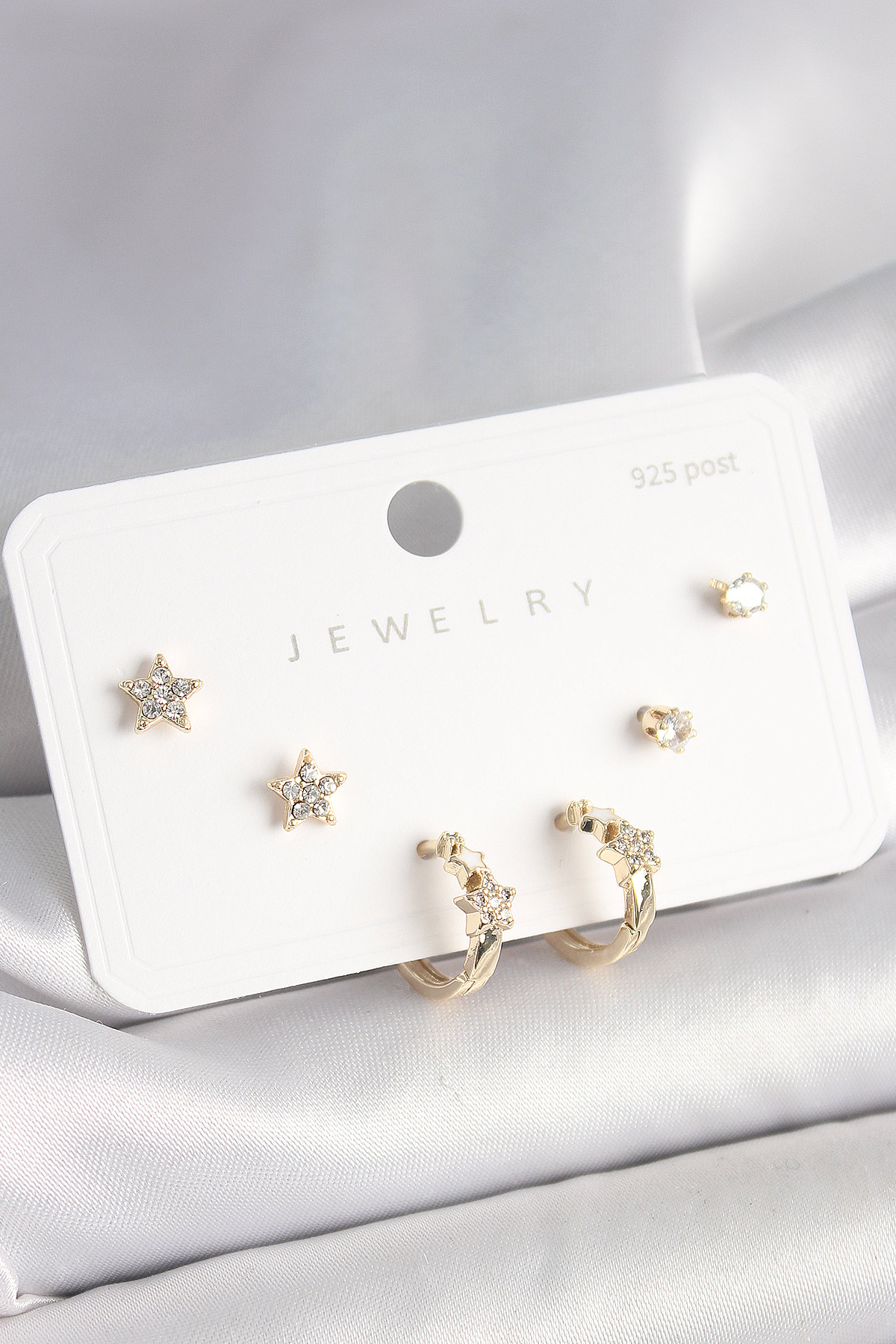 925 Ayar Çivi Pirinç Gold Renk Zirkon Taşlı Yıldız Model Kadın Küpe Seti - TJ-BKP10397