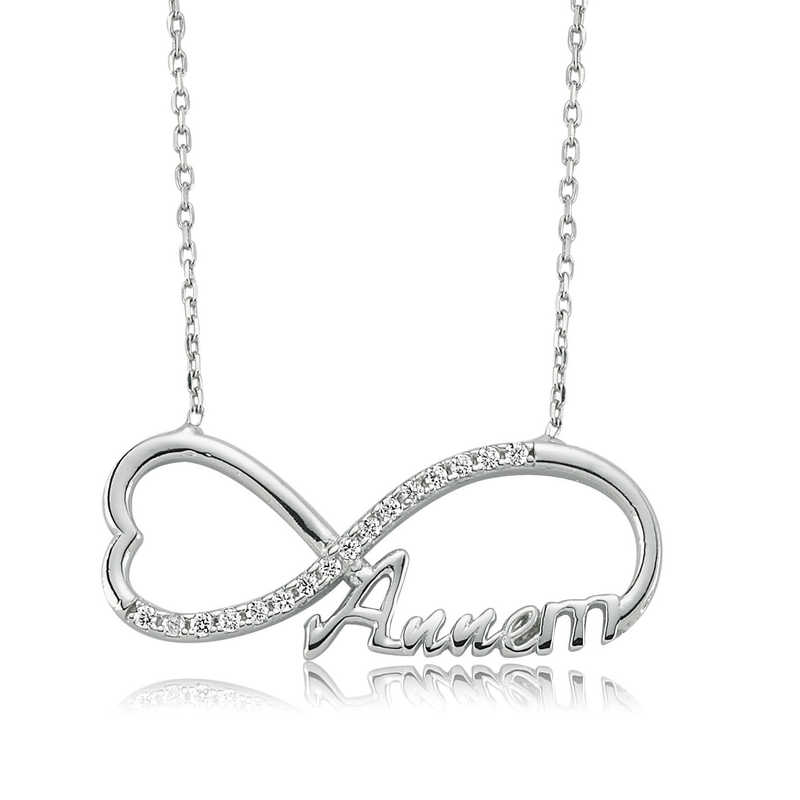 Gümüş Annem Yazılı Sonsuzluk Bayan Kolye