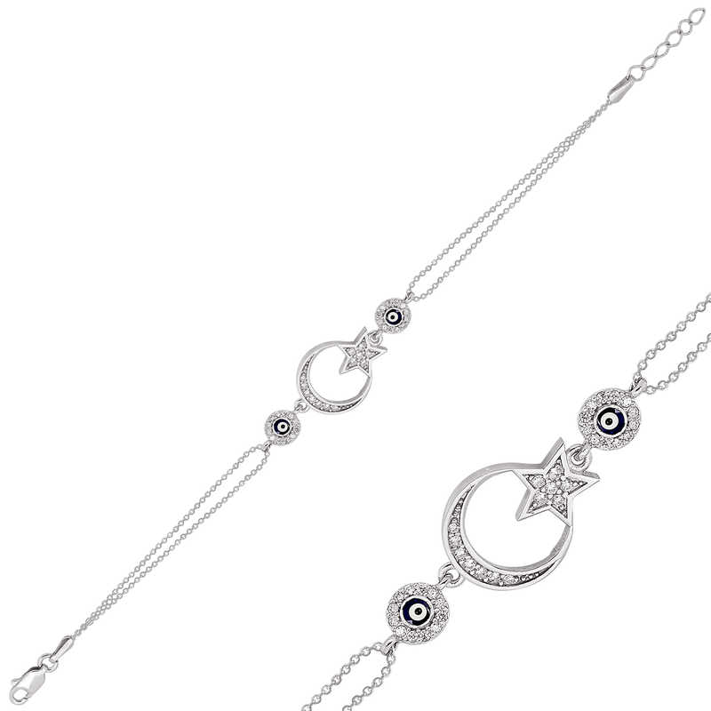 Gümüş Ay Yıldız Nazar Bayan Bileklik
