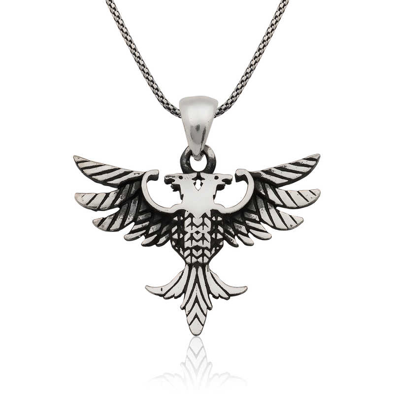 Gümüş Çift Başlı Kartal Erkek Kolye