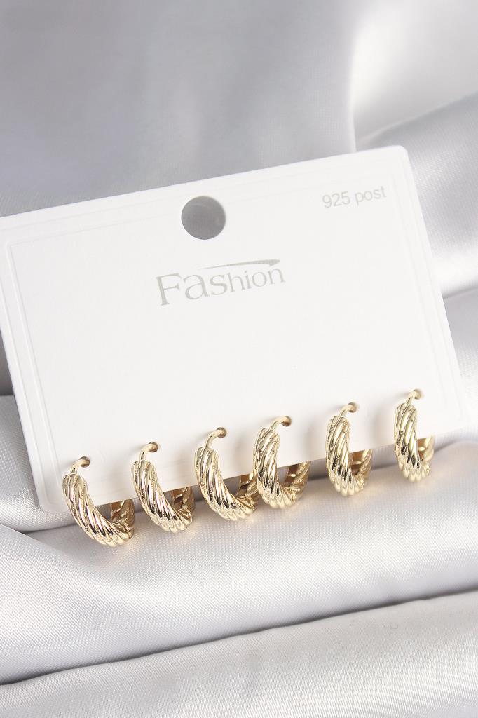 925 Ayar Gümüş Çivi Pirinç Gold Renk İşlemeli Halka Model Kadın Küpe Seti - BKP10411