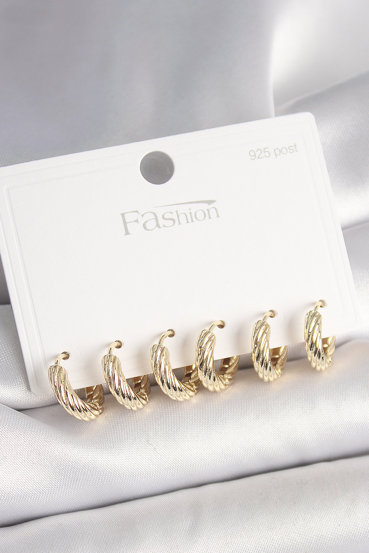 925 Ayar Gümüş Çivi Pirinç Gold Renk İşlemeli Halka Model Kadın Küpe Seti - TJ-BKP10411