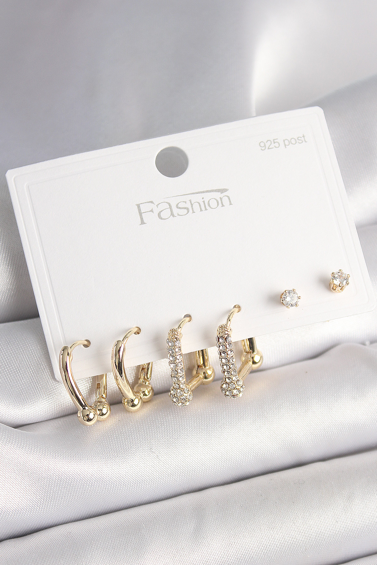925 Ayar Gümüş Çivi Pirinç Gold Renk Tiffany Halka Model Kadın Küpe Seti - TJ-BKP10407