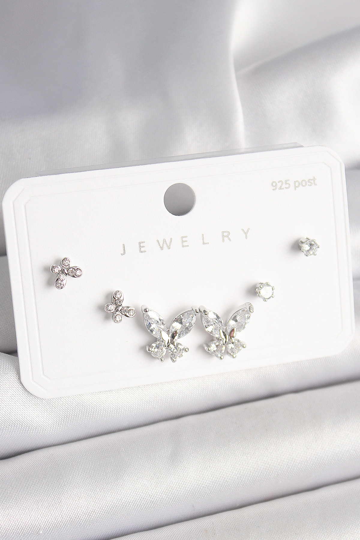 925 Ayar Gümüş Çivi Pirinç Zirkon Taşlı Kelebek Model Kadın Küpe Seti - TJ-BKP10402