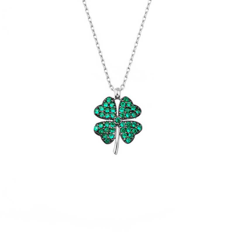Yıllardır dört yapraklı yoncanın şans getirdiğine inanılınır ve bir çok insan sadece bu sebepten yonca figürleri kullanmaktadır. Yoncanın şans getirmesi dışında onlarca yararı vardır. Yonca kolyesini taşıyacak bir kişi şansını ve şifasınıda yanında taşıyacak demektir. Dört yapraklı yonca bütün kültürlerde iyi şansın sembolü olarak kabul edilir. Birinci yaprak ümidi, ikincisi imanı, üçüncüsü aşkı, dördüncü yaprak ise şansı simgeler. Tabiatta çok nadir bulunan bu dördüncü yapraktır. Gümüş yeşil zirkon taşlarla süslenmiş dört yapraklı yonca kadın kolye, severek kullanabileceğiniz ve sevdiklerinize hediye edebileceğiniz harika bir modeldir. Gümüş yeşil taşlı kadın kolye 925 ayar gümüşten imal edilmiştir. Gümüş kolye üzerinde rodyum kaplama yapılmıştır. Rodyum kaplama yapılan gümüş kadın kolyeler parlaklığını uzun süre muhafaza eder, oksitlenmesi gecikir. Gümüş olan zincir boyu ortalama 45 cm'dir. Tüm gümüş kadın kolye modellerimizde olduğu gibi gümüş dört yapraklı yonca kadın kolye de el emeği ile üretilmiştir. Gümüş ve değerli taşlar nedeniyle ürün ağırlığında ± %10 sapma olabilmektedir.