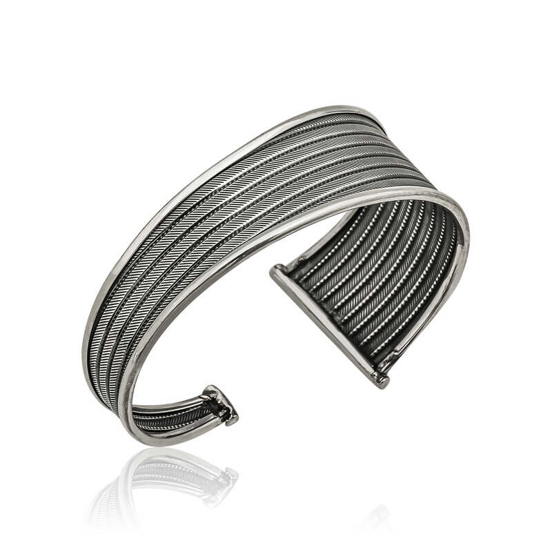 Gümüş Eskitme Desenli Bayan Bilezik