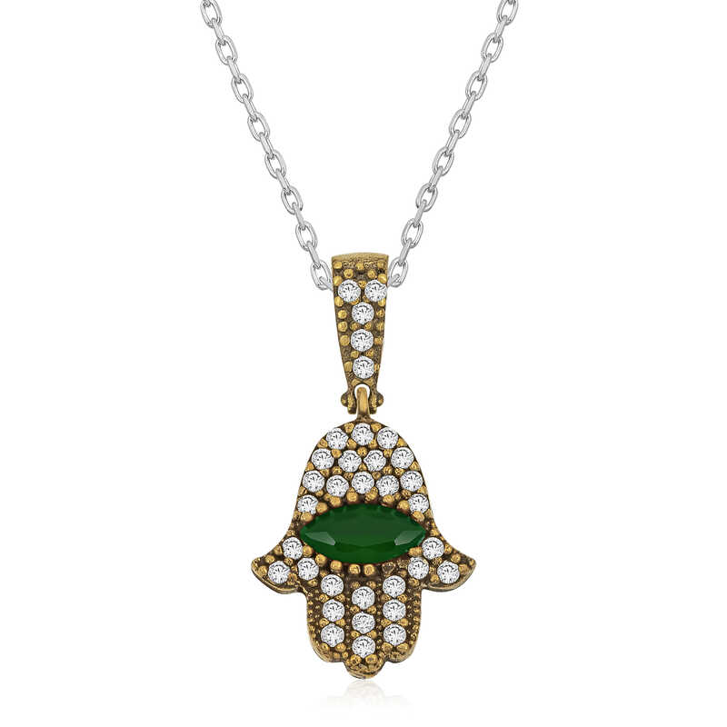 Hamse olarak da bilinen Fatma Eli beş anlamına gelir ve bir elin parmak sayısını gösterir. Rivayete göre Hz. Fatma bir gün mutfakta helva kavururken, eşi Hz. Ali onu pişen helvaya elini daldırarak karıştırdığını görür. O günden sonra elinin kutsallığına, gücüne adeta yenilmezliğine inanılır. Her güçlük adeta onun eliyle aşılacaktır. Geniş bir coğrafyada gücüne halen inanılan bu sembolden yola çıkarak tasarlanan bu harika gümüş bayan kolye modeli 925 ayar gümüş ve bronz madenleriyle üretilmiştir. Gümüş Fatma eli otantik bayan kolye üzerinde oksit kaplama vardır. Oksit kaplama yapılan otantik gümüş bayan kolye modelleri eskimiş bir görünüme kavuşur. Kolye ile birlikte 45 cm uzunluğunda 925 ayar gümüş zincir gelecektir. Bütün bayan otantik kolye modellerimizde olduğu gibi gümüş Fatma eli otantik bayan kolye modeli el emeği ile üretilmiştir. Gümüş ve değerli taşlar nedeniyle belirtilen ortalama ürün ağırlığında ± %10 sapma olabilmektedir.