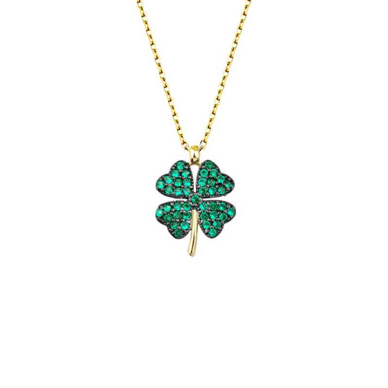 Yıllardır dört yapraklı yoncanın şans getirdiğine inanılınır ve bir çok insan sadece bu sebepten yonca figürleri kullanmaktadır. Yoncanın şans getirmesi dışında onlarca yararı vardır. Yonca kolyesini taşıyacak bir kişi şansını ve şifasınıda yanında taşıyacak demektir. Dört yapraklı yonca bütün kültürlerde iyi şansın sembolü olarak kabul edilir. Birinci yaprak ümidi, ikincisi imanı, üçüncüsü aşkı, dördüncü yaprak ise şansı simgeler. Tabiatta çok nadir bulunan bu dördüncü yapraktır. Gümüş yeşil zirkon taşlarla süslenmiş dört yapraklı yonca kadın kolye, severek kullanabileceğiniz ve sevdiklerinize hediye edebileceğiniz harika bir modeldir. Gümüş yeşil taşlı kadın kolye 925 ayar gümüşten imal edilmiştir. Gümüş kolye üzerinde gold kaplama yapılmıştır. Gold kaplama yapılan gümüş kadın kolyeler parlaklığını uzun süre muhafaza eder, oksitlenmesi gecikir. Gümüş olan zincir boyu ortalama 45 cm'dir. Tüm gümüş kadın kolye modellerimizde olduğu gibi gümüş dört yapraklı yonca kadın kolye de el emeği ile üretilmiştir. Gümüş ve değerli taşlar nedeniyle ürün ağırlığında ± %10 sapma olabilmektedir.