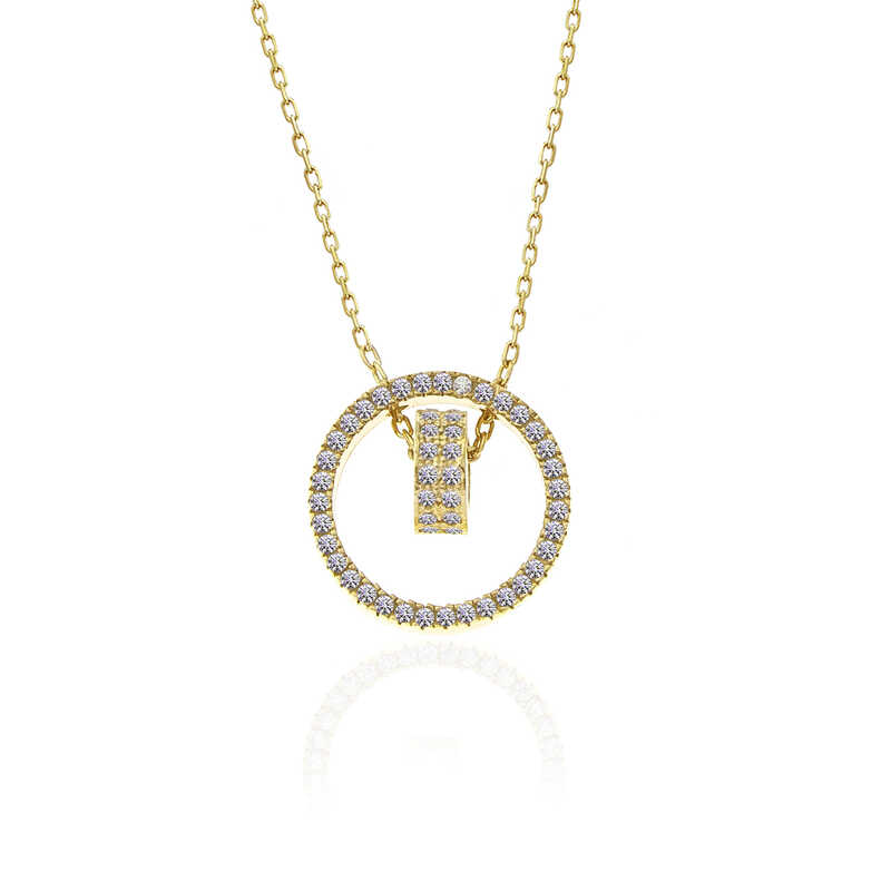 İçe içe geçmiş halka kadın kolye, sembollerden hoşlanmayıp sadelikten yana olanların tercih edebileceği oldukça şık bir tasarımdır. Gümüş iç içe geçmiş halka kadın kolye, son yıllarda oldukça popüler modeller arasındaki yerini almıştır. Gümüş iç içe geçmiş kadın kolye 925 ayar gümüşten imal edilmiştir. Bu kolye üzerine gold kaplama yapılmıştır. Gold kaplama yapılan ürünler parlaklığını uzun süre muhafaza eder. Üzerinde bulunan taşlar zirkon'dur. Tüm gümüş kadın kolye modellerinde olduğu gibi gümüş iç içe geçmiş halka kadın kolye modeli de el emeği ile üretilmiştir. Gümüş ve değerli taşlar nedeniyle belirtilen ortalama ürün ağırlığında ± %10 sapma olabilmektedir.