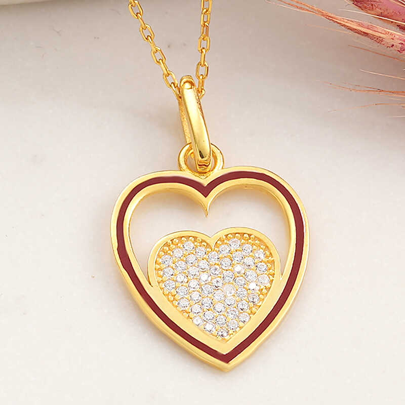 925 Ayar Gümüş Gold Kalp Kadın Kolye T8184