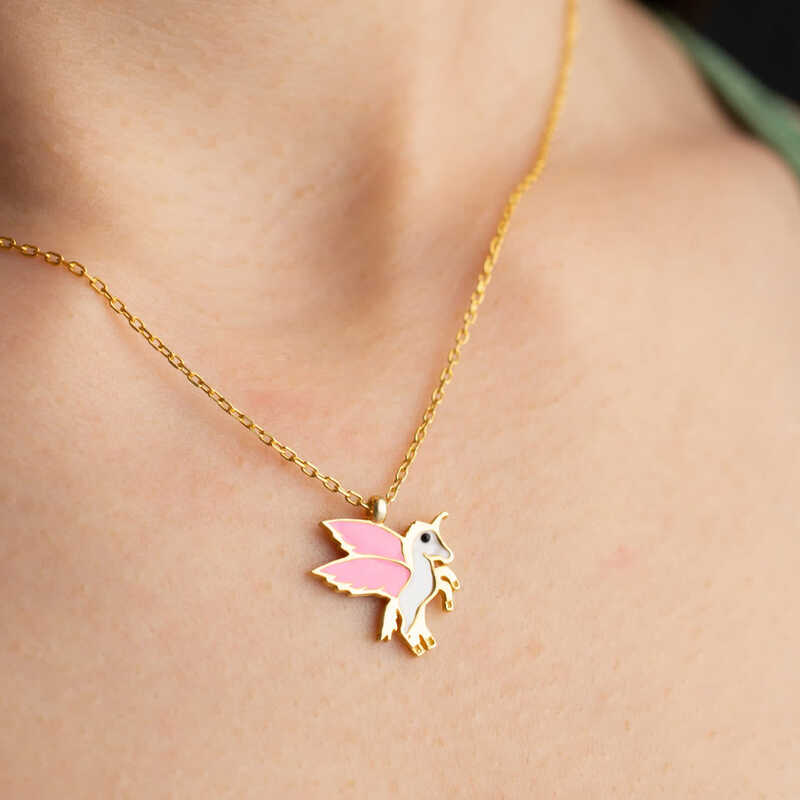 Gümüş Gold Kanatlı At Kadın Kolye