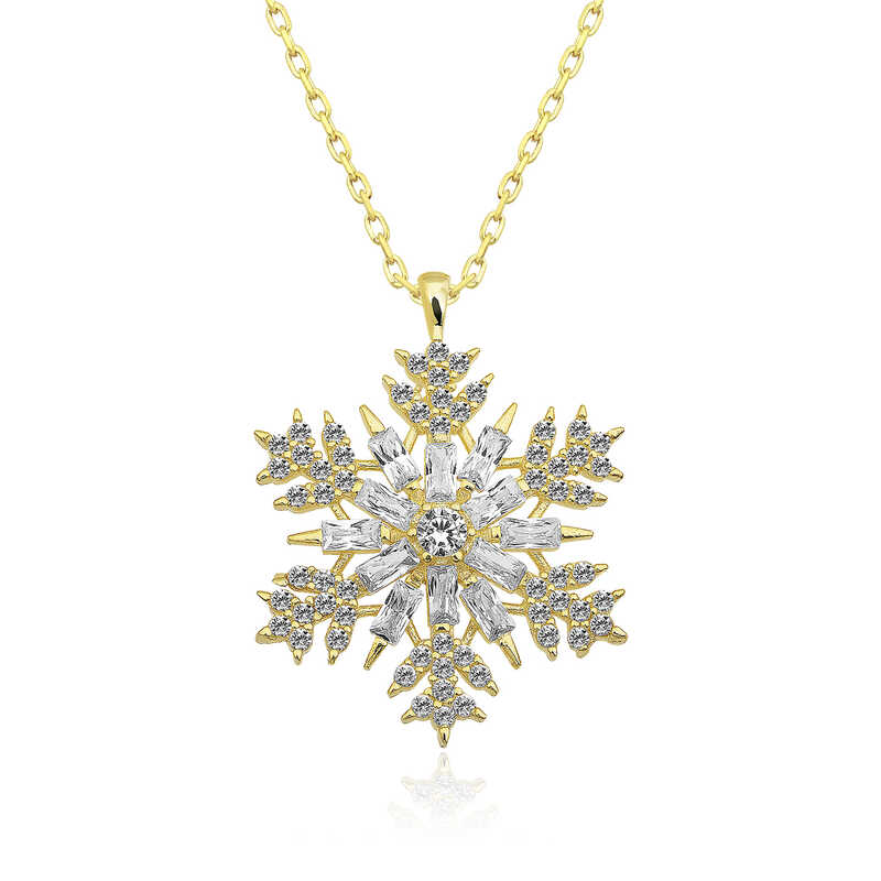 Gümüş Gold Kar Tanesi Kolye