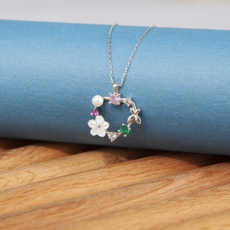 Gümüş Kalp Manolya Çiçeği Kelebek Kadın Kolye